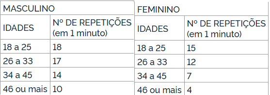 - TESTE DE FLEXÃO COM O COTOVELO EM 90º (masculino e feminino);