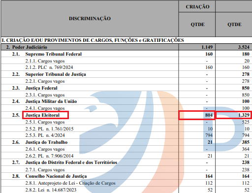 A LOA 2025 foi sancionada na última quinta-feira (10/4), pelo presidente Lula. O documento traz a previsão de 4.664 provimentos de cargos para o Poder Judiciário. Deste total, 2.133 são para o Tribunal Superior Eleitoral, distribuídos da seguinte forma: