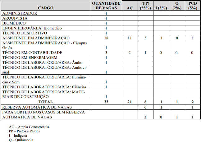 Confira, abaixo, a distribuição das vagas: