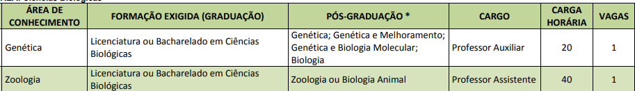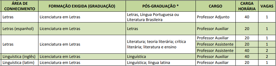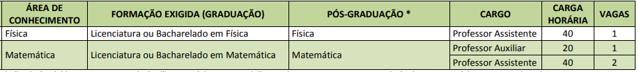 Na ocasião, as vagas contemplaram as seguintes áreas: