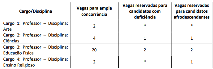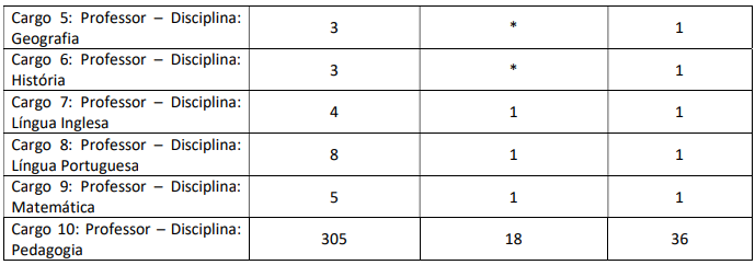 Sob organização da banca Cebraspe, o certame ofertou 359 vagas para Professor nas seguintes áreas: