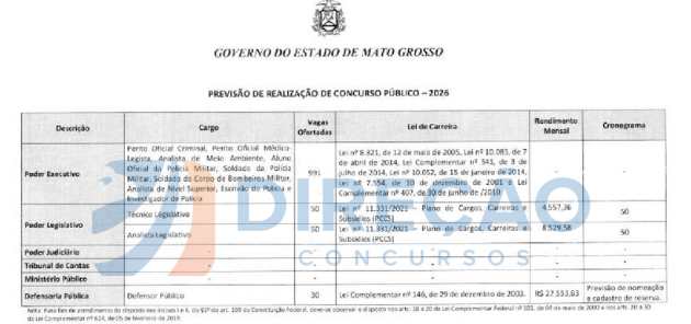 Confira a previsão completa de concursos MT para 2026:
