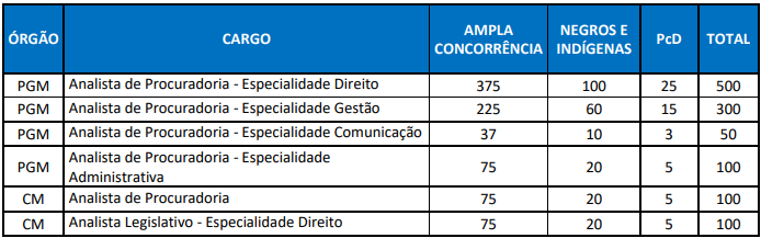 - Analista de Procuradoria – Especialidade – Direito: 24 vagas + CR
