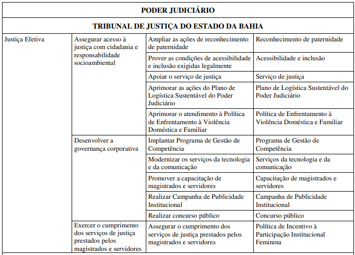 De acordo com o documento, um dos compromissos estipulados para a Justiça Efetiva é desenvolver a governança corporativa, por meio de diversas iniciativas, dentre elas, o concurso público.