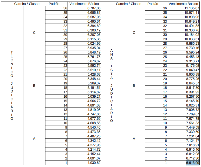 Veja como é a atual estrutura remuneratória do TJ BA e a evolução dos salários ao longo da carreira: