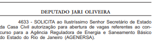 A realização de dois concursos RJ foram solicitadas para a Secretaria de Educação (Seeduc RJ) e para a Agência Reguladora de Energia e Saneamento Básico (Agenersa RJ) pelo deputado estadual Jari Oliveira!