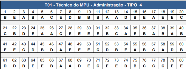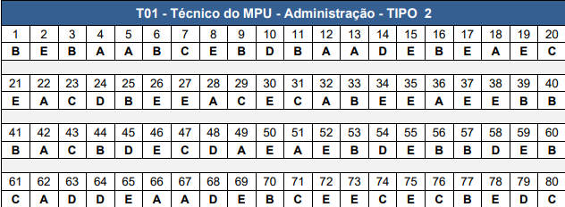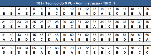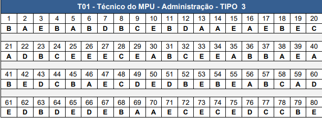 Confira os gabaritos divulgados pela banca FGV, para o cargo de Técnico do MPU – Administração: