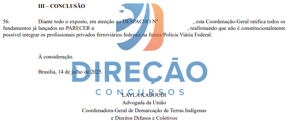 Por sua vez, a Advocacia-Geral da União (AGU) negou a proposta, alegando ser inconstitucional o ingresso de empregados da Rede Ferroviária Federal Sociedade Anônima (RFFSA) e da Companhia Brasileira de Trens Urbanos (CBTU) como servidores públicos, na qualidade de Policiais Ferroviários Federais, sem a realização do respectivo concurso público exigido.