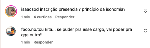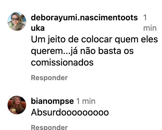 Concurseiros criticaram a medida e apontaram falhas no princípio da isonomia. Um dos comentários questiona: “Inscrição presencial? Princípio da isonomia?”. Outras reações foram mais duras, alimentando temores de favoritismo e corrupção.